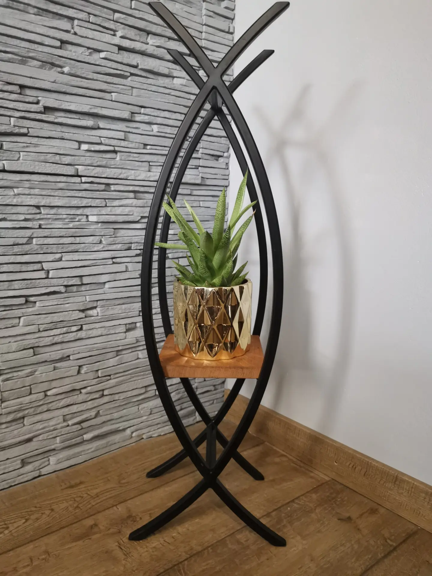 Stojak/kwietnik “Triumf mały” w stylu loftowym, wykonany z solidnego profilu zamkniętego. Wyposażony w półkę z litego dębu, łączy minimalistyczny design z praktycznością, idealny do nowoczesnych aranżacji.