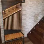 Loftowy wieszak “Steel Wood” to rękodzieło łączące różnorodne profile zamknięte z poprzeczną deską z orzecha włoskiego. Górna półka i siedzisko z buku, dolna półka z lameli sosnowych oraz centralne lamele dębowe z siatką perforowaną tworzą wyjątkowy design w stylu loftowym.